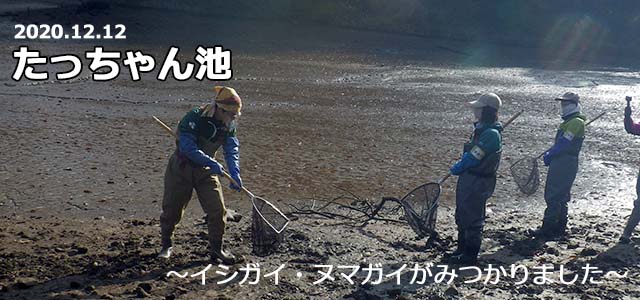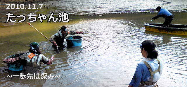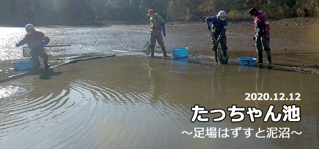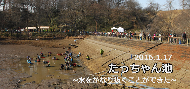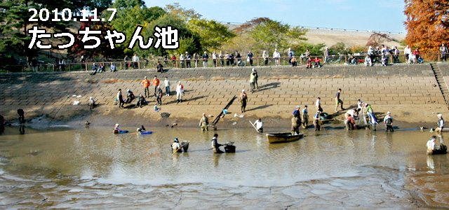 - 正式名称は宅部池(やけべいけ)。狭山公園(東京都東大和市・東村山市)にあります。多摩湖堤防の南端を東に向かって降りたとこです。ここが北川の源流です。2010年,16年,20年にかいぼりを実施しています。かいぼり前の調査でブラックバスなどの外来種がはびこり、在来魚死滅の恐れありという点から、かいぼりに踏み切りました。うかつにはまると身動きができなくなるほど泥が深く、激闘を余儀なくされます。2016年のかいぼりでは、かいぼり後しばらく天日干しをした成果で水がきれいになりました。2020年は二枚貝の調査が加わりました。