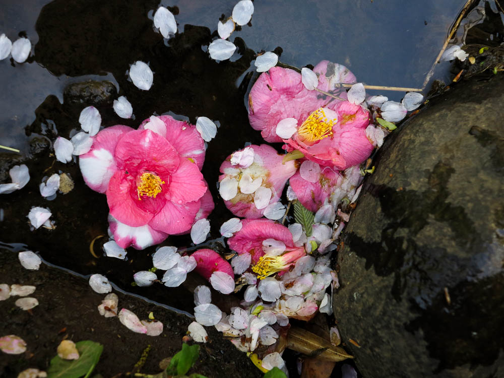 サクラとツバキが流れてきました