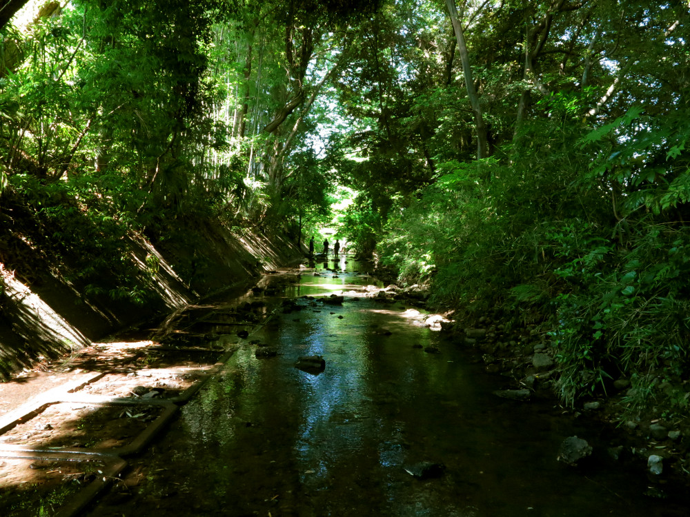 公園内水路へのポンプアップのため深くなってます