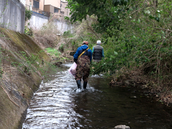 われわれもそうじを忘れシバシ魚とり