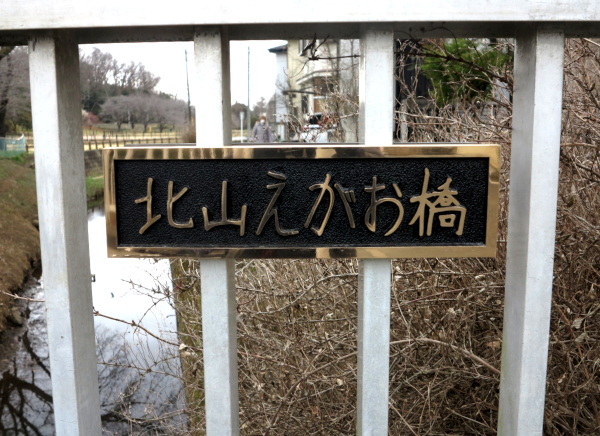 木のうしろに見えるのは善行橋
