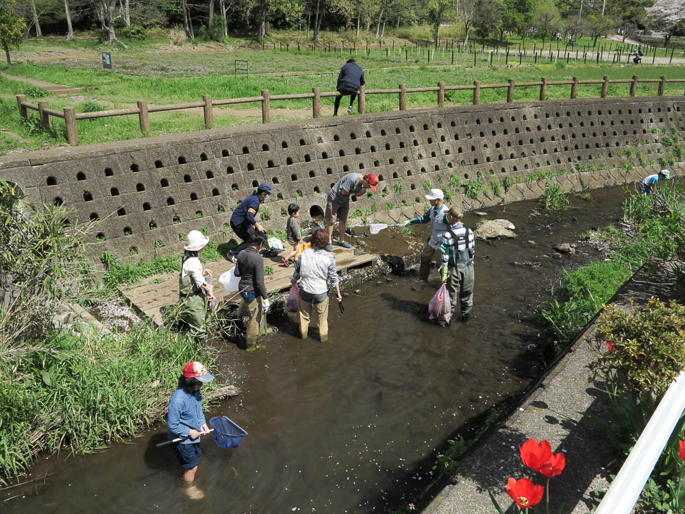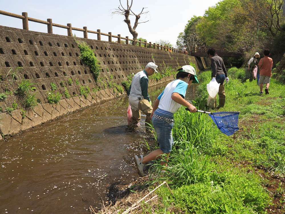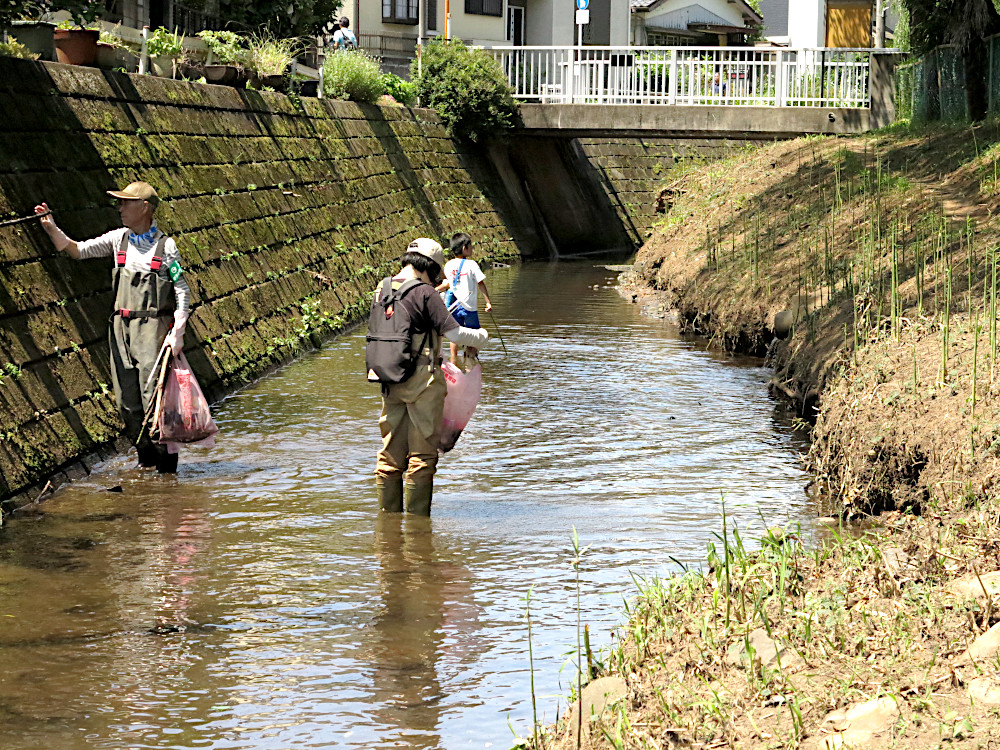 われわれもそうじを忘れシバシ魚とり